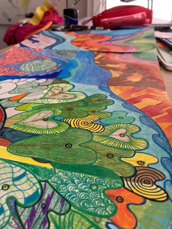 A series of short videos on creative capacity set the stage for a group dialogue that expanded the concept beyond “being able to draw” or “good at art.” The mural activity and timeline were introduced; the session ended by using the last 15 minutes to start their tile.
